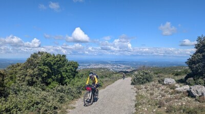 Maandag 19 mei was hét hoogtepunt van de week: de beklimming van de Mont Ventoux. De route ging grotendeels onverharde omhoog, met af en toe een stuk lopen en een klein buitje regen – het enige van de hele week. Na een koffiestop in Mont Serein begon de laatste klim van 500 hoogtemeters over asfalt. Op 1910 meter hoogte stonden weeindelijk boven. Een bijzonder moment – moe, maar trots. De afdaling was lang en verdiend. ’s Avonds vierden we het op een terras in Malaucène.