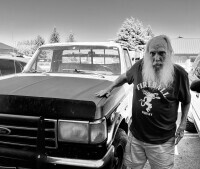 Ik zoek ondertussen de schaduw op en zit op een stoepbalk op de parkeerplaats. Dan komt er een oude Ford pick-up aanrijden, een echte Montana-barrel. Achter het stuur zit een man met een lange witgrijze baard. Hij zet zijn bril op, bladert door wat papieren en kijkt even mijn kant op. Hij ziet eruit alsof hij zo uit een western is weggelopen.